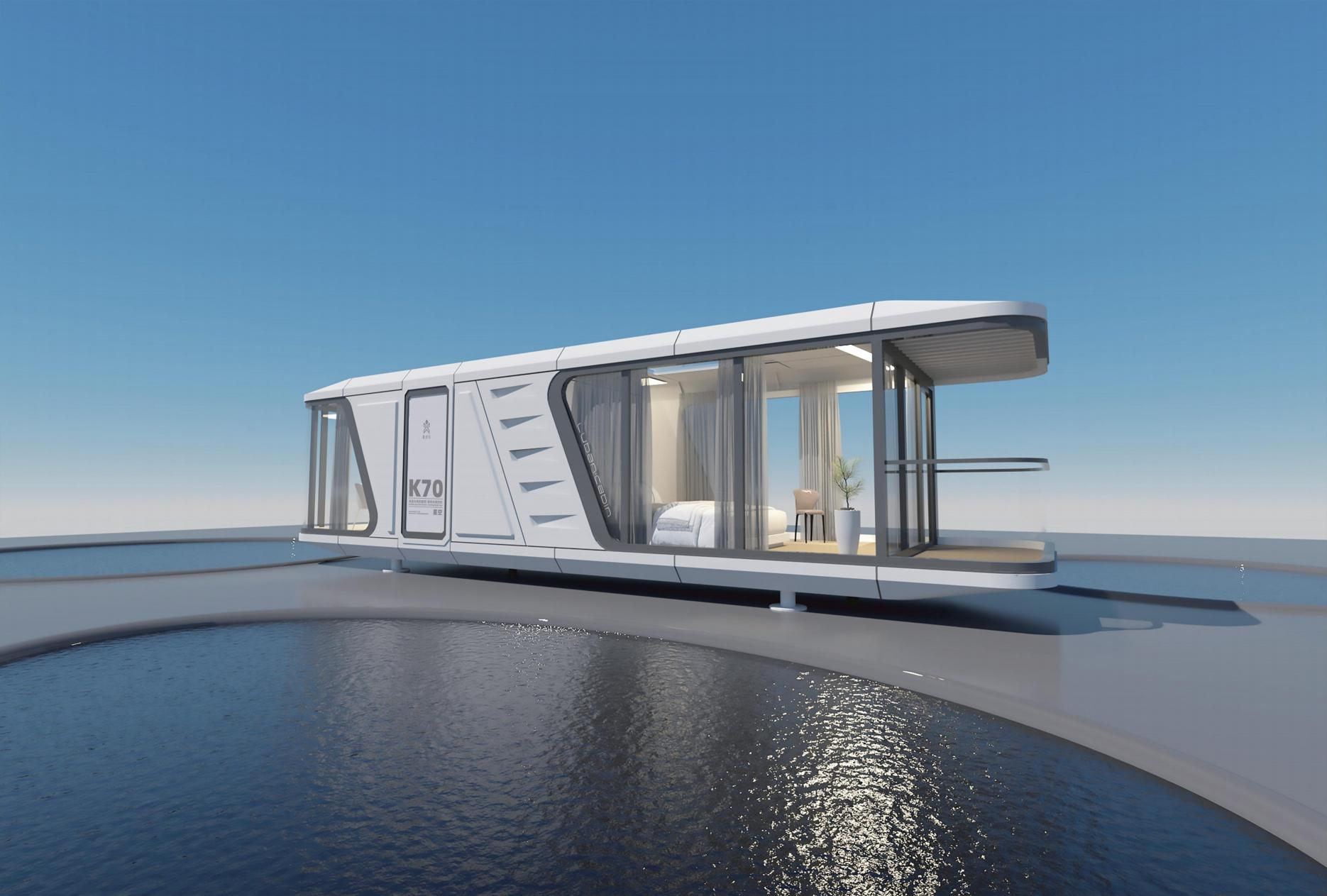 Xcaby-capsules worden gebouwd met duurzame materialen die in hoogwaardige modulaire productieprocessen worden toegepast: sterke stalen frames, aluminium panelen, isolerende meerlaagse wanden en energie-efficiënte beglazing.